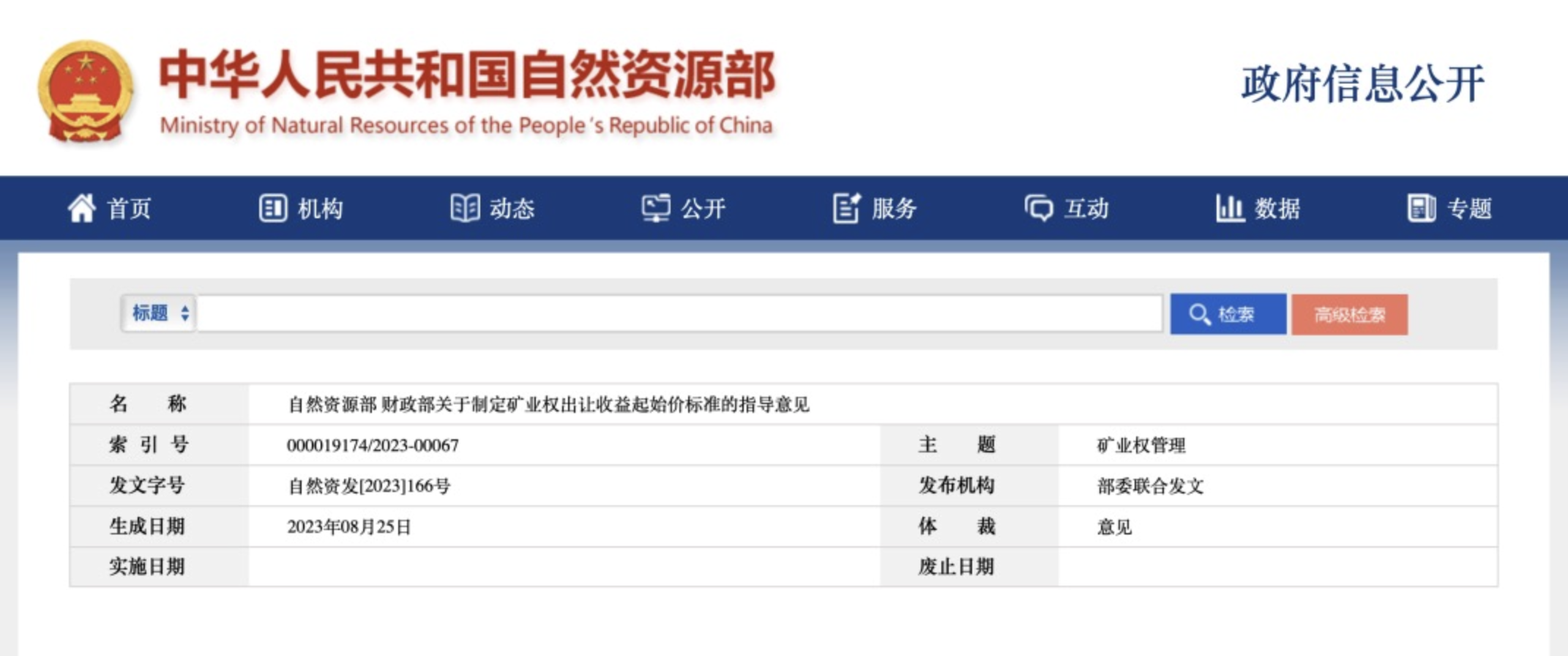 重要文件!礦業權出讓收益起始價標準發(fā)布